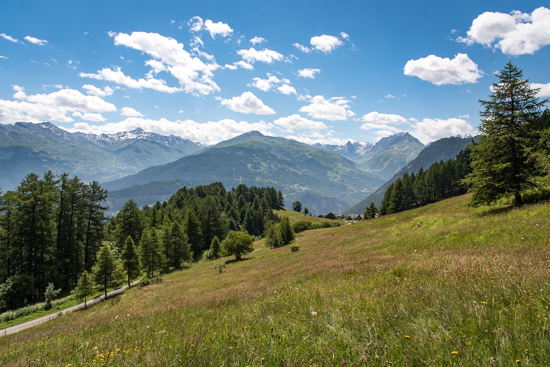 Paysages variés — prairies, forêts et panoramas alpins.